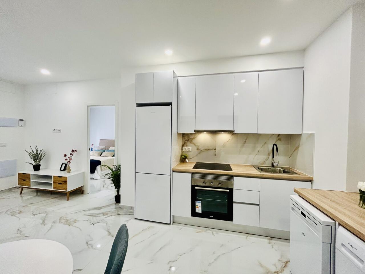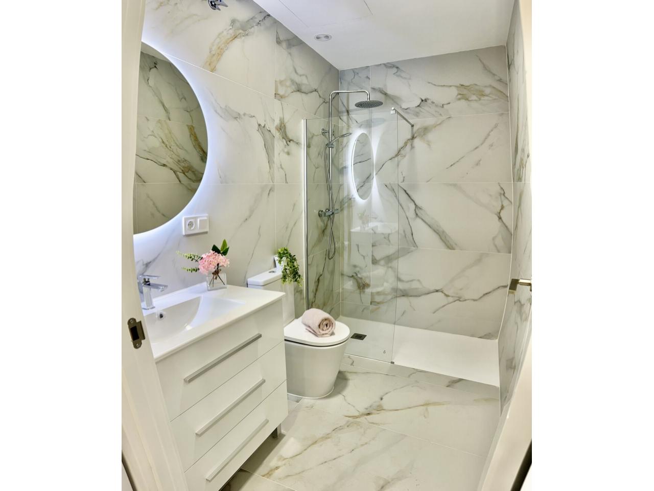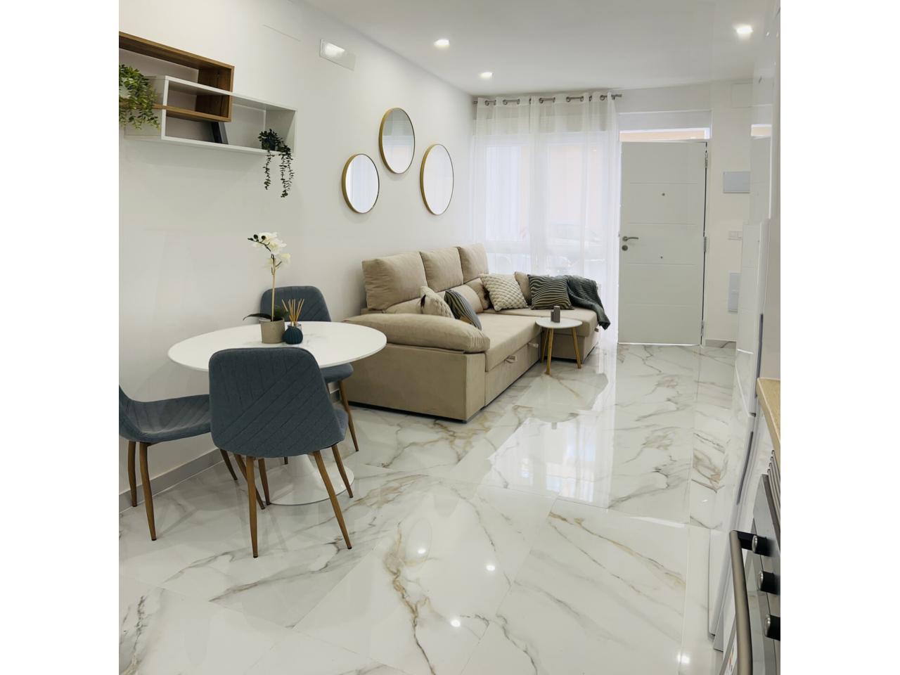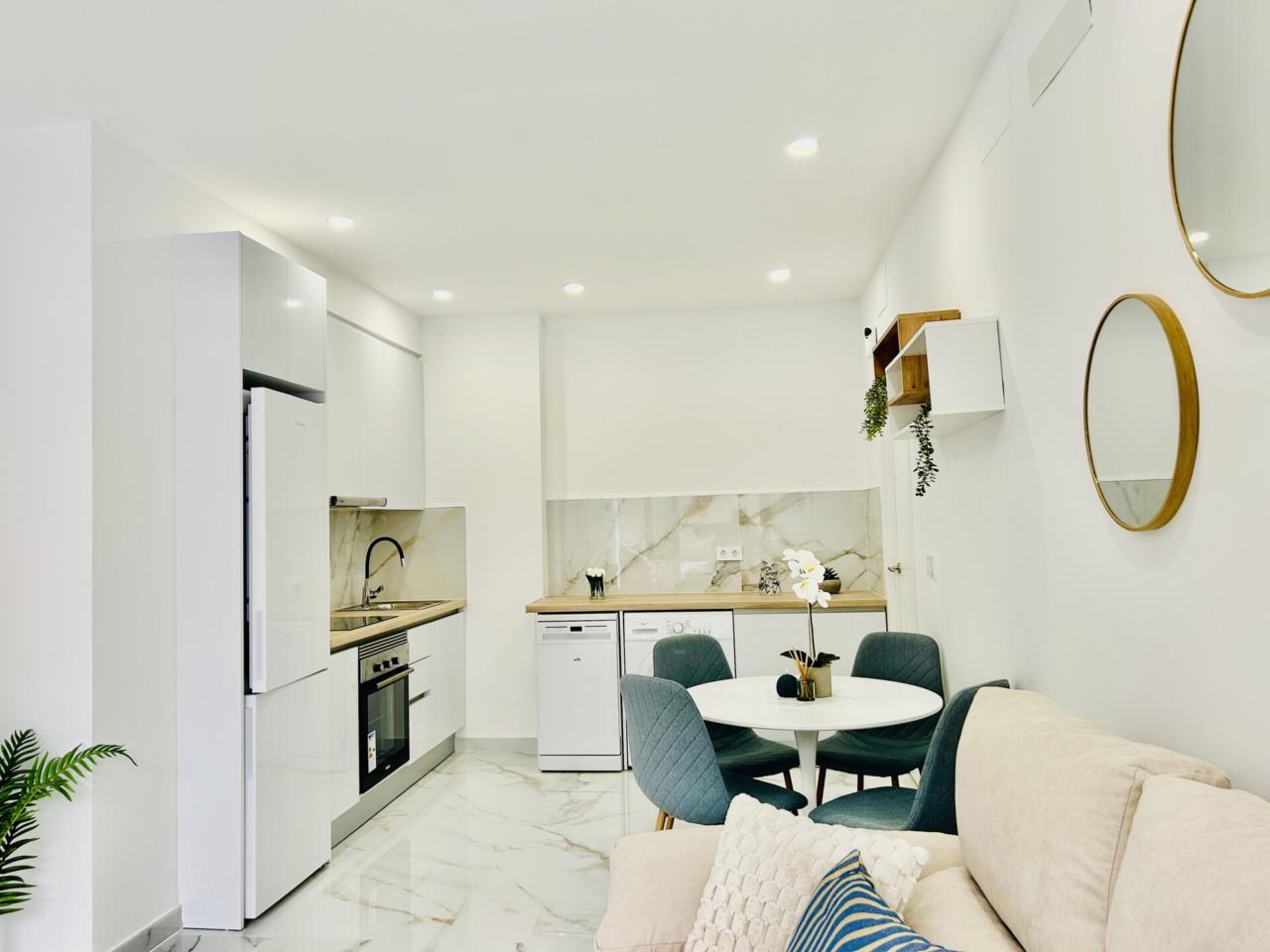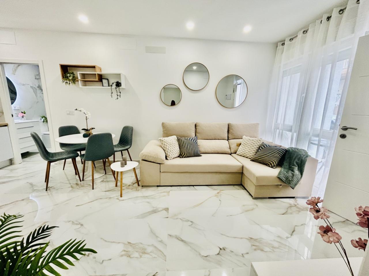 apartamento nuevo y a estrenar , una oportunidad excelente de adquirir una vivienda toda a estrenar perfectamente amueblada ,equipada y decorada con un estilo moderno ,elegante y funcional....calidades excelentes como suelo porcelánico de gran formato, pintura en liso , ventanas en pvc y climalit, carpintería lacada en blanco ....diseñado todo para tener una gran luminosidad y amplitud.