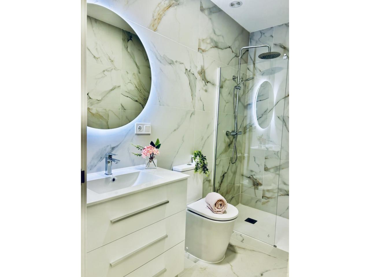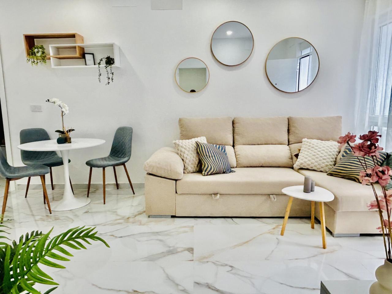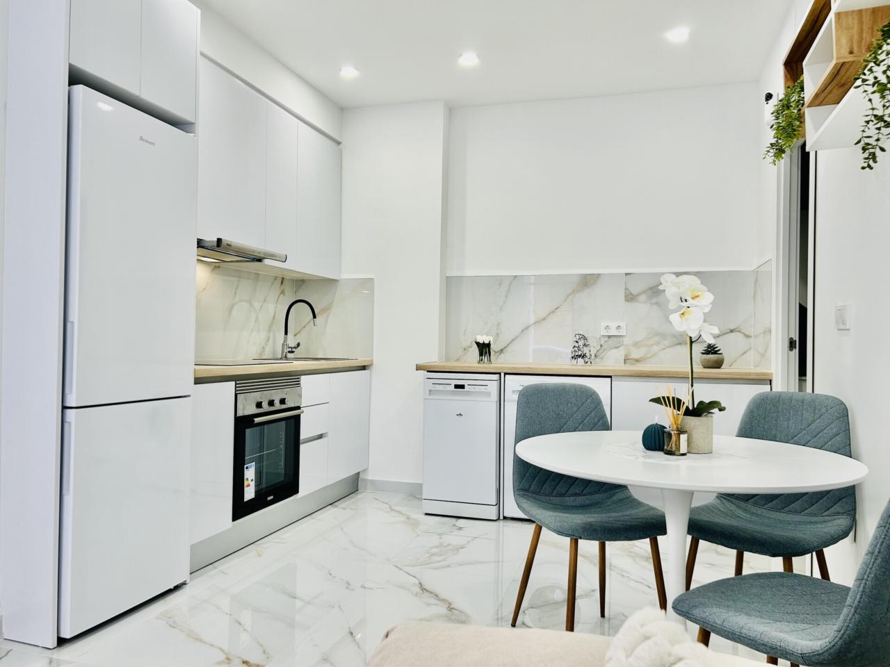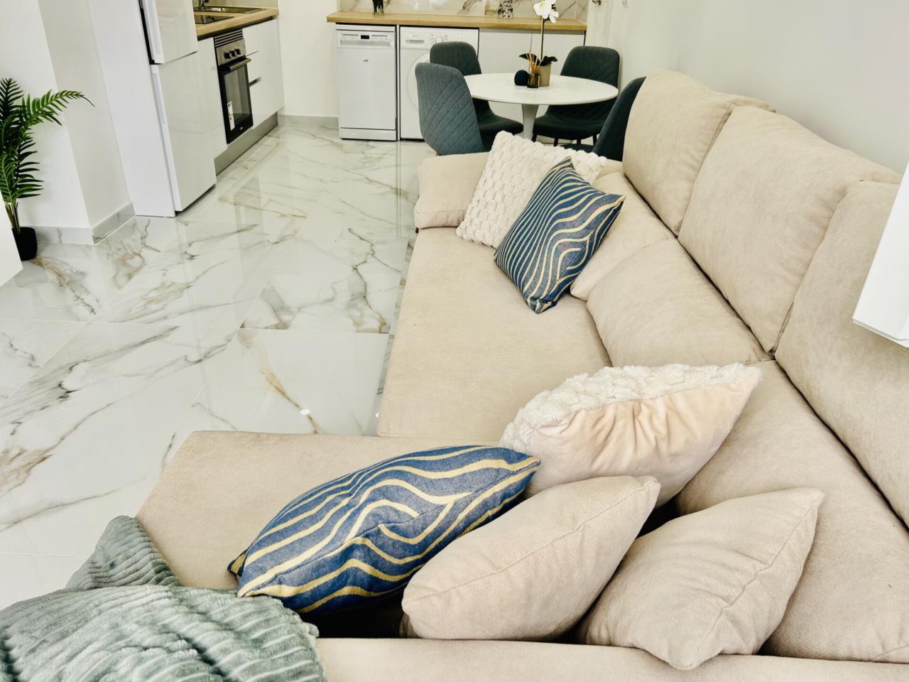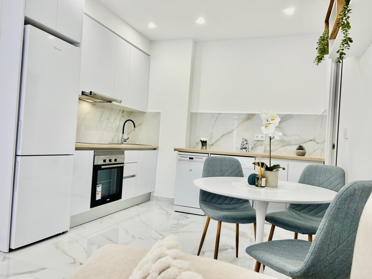 apartamento nuevo y a estrenar , una oportunidad excelente de adquirir una vivienda toda a estrenar perfectamente amueblada ,equipada y decorada con un estilo moderno ,elegante y funcional....calidades excelentes como suelo porcelánico de gran formato, pintura en liso , ventanas en pvc y climalit, carpintería lacada en blanco ....diseñado todo para tener una gran luminosidad y amplitud.